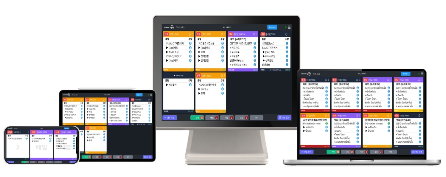조리 우선순위 시각화, 지연 주문 경고, 카테고리별 분류 등을 통해 주방의 생산성을 향상하고 오류를 최소화합니다.